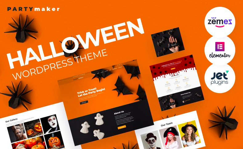 On the eve of Halloween, storefronts are flooded with themed decorations, and costume parties are held in almost every restaurant. More and more companies realize that such a fuss around the holiday can be beneficial for their business. Project owners are looking for templates with bats, jack pumpkins, and cobwebs to promote their goods or parties. Check out PartyMaker template that is a suitable theme for spooky Halloween parties.